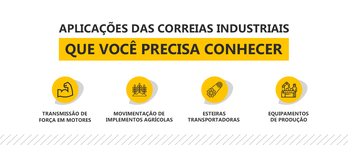 Diferentes aplicações industriais demandam características específicas das correias, como resistência a temperaturas extremas, produtos químicos, óleos ou abrasão. Setores como mineração, siderurgia, alimentício, têxtil, automotivo e muitos outros possuem requisitos particulares que devem ser considerados na especificação destes componentes.